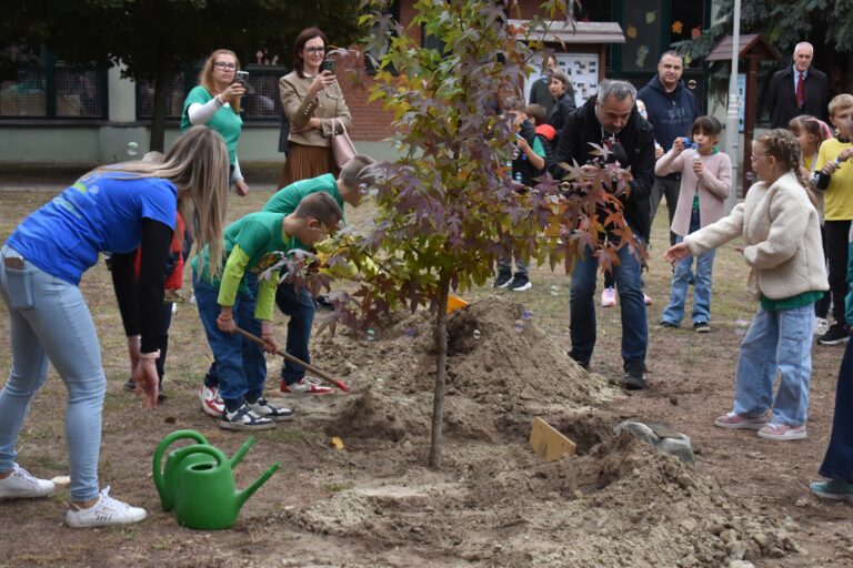 Az ünnepi beszédek és a műsor után a hagyományos Terményünnep következett az intézmény udvarán. A gyönyörűen feldíszített környezetben először átadták a rajz- és meseíró verseny díjait, majd a 30. évforduló tiszteletére emlékfát ültettek. Az amerikai ámbrafa – amely őszi, színes lombkoronájával az MNÁMK közösségének sokszínűségét szimbolizálja – mellé egy időkapszulát helyeztek el, amelybe a jelenlegi osztályok és a tantestület fényképei, névsorai, az óvodások rajzai, az intézményegységek logói, valamint a díjazott rajzok és mesék másolatai kerültek. A jövő generációi ezáltal egy későbbi jubileum alkalmával bepillantást nyerhetnek a ma közösségének életébe. A program meglepetéssel zárult. Óvodások és iskolások közös éneklés után, birtokba vették az óriási játszóteret, barkácsolási lehetőségekkel, népi játékokkal, óriási társasjátékokkal, valamint kirakodóvásárral. A felnőttek ezalatt megtekinthették az óvodát, az iskolát, az udvaron található Ulmi dereglyét és az aulában lévő kiállítást.