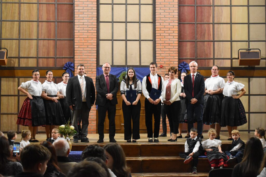 Az okleveleket Soltész Miklós, egyházi és nemzetiségi kapcsolatokért felelős államtitkár adta át. Köszöntő beszédében gratulált a két diáknak és köszönetet mondott szüleiknek, tanáraiknak. „Örömmel jöttem Bajára. Az MNÁMK pedagógusai és diákjai nagyszerű munkát végeznek a német nemzetiségi hagyományok ápolása terén. Ezt a tevékenységet a jövőben is támogatni fogjuk. A most látott műsor és a két díjazott megerősít abban, hogy lehet valaki egyszerre jó tanuló és szülőföldje nemzetiségéért tettre kész fiatal” – mondta az államtitkár, majd átadta az okleveleket.