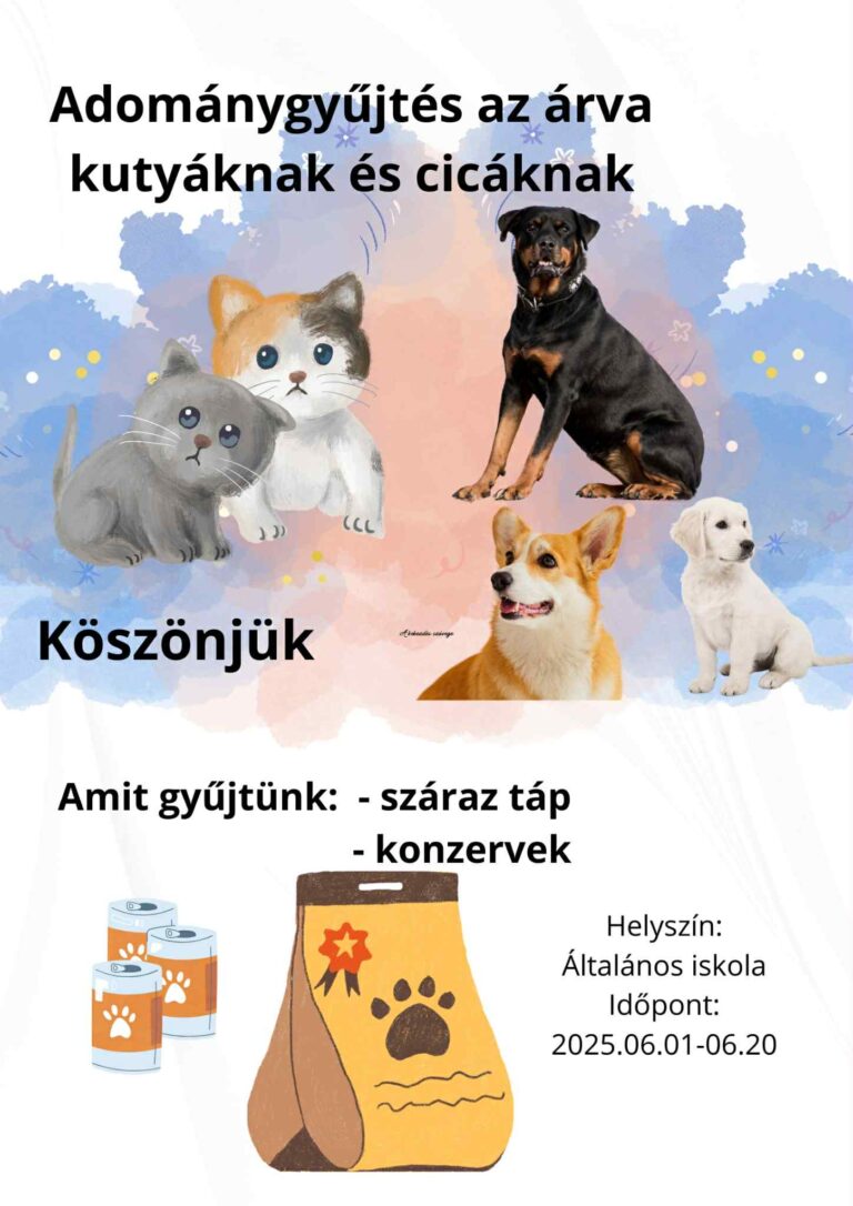 Az MNÁMK Általános Iskolája jótékonysági gyűjtést szervez az árva kutyáknak és macskáknak.