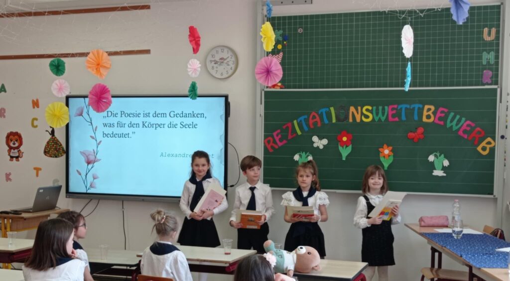 Am 12. März fand an unserer Schule ein deutschsprachiger Rezitationswettbewerb für die Klassen 1-2 statt.