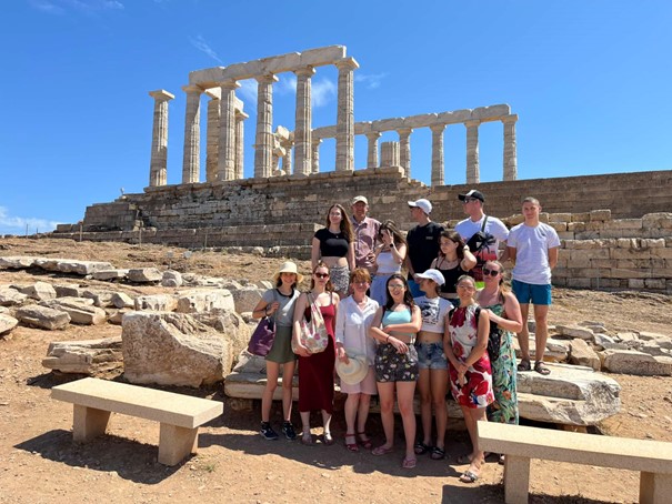 Am Donnerstag – angesichts der warmen Temperaturen und des intensiven Programms der Vortage – unternahmen wir einen gemeinsamen Ausflug zum südlichsten Punkt der Halbinsel Attika, zum Kap Sounion. Dort bewunderten wir den Poseidontempel, der nicht nur historische und kulturelle Bedeutung hat, sondern auch einen atemberaubenden Blick auf die Ägäis bietet. Danach erfrischten wir uns bei einem Bad im Meer.