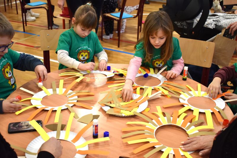 Nach der Preisverleihung wurden die Kinder mit Spiel und Spaß verwöhnt. Die Kleinen konnten Löwenköpfe basteln und ihre Fähigkeiten auf dem Hindernisparcours testen. Der Höhepunkt der Veranstaltung war der Besuch von Leo, dem beliebten Maskottchen unserer Schule, der kam, um die begeisterten Teilnehmer persönlich zu treffen.