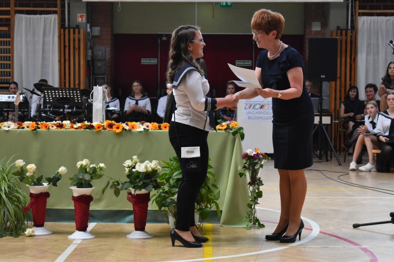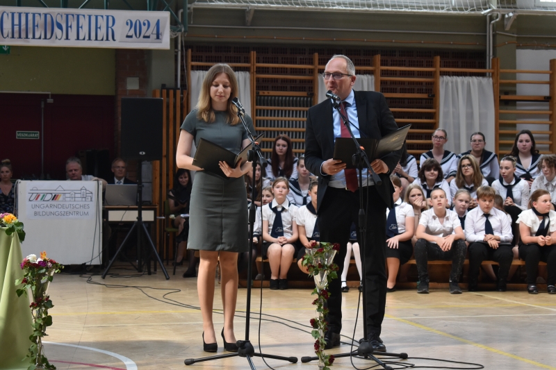 A magyar, a német és a magyarországi németek himnusza után színvonalas ünnepi műsor vette kezdetét. Fellépett a kollégiumi zenekar, az MNÁMK kórusa, hallhattunk nagyszerű 11-es búcsúbeszédet. A kiválóan előadott versek, prózák és dalok mellett megható gondolatokkal köszöntek el a végzősök is. Üde színfolt volt a jövőre ballagó 12. d-s technikumi osztály fellépése. Egy ismert musical gyönyörű betétdalát énekelték.