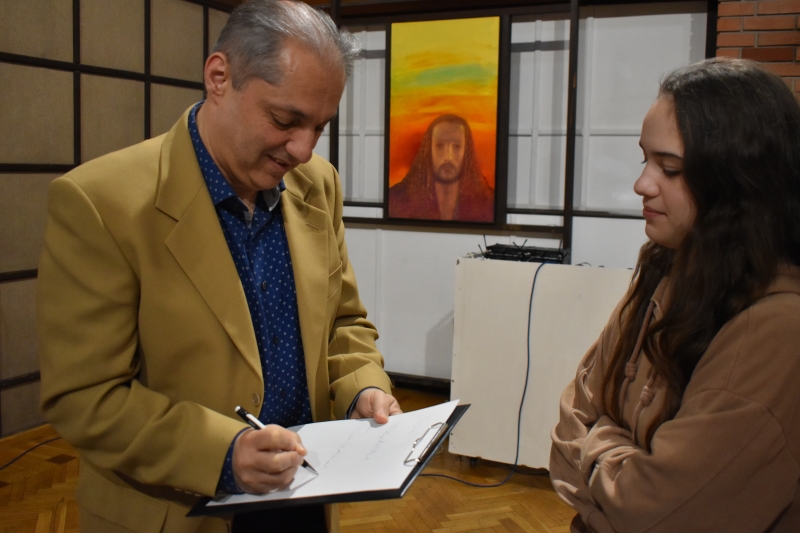 Talán nem túlzás azt állítani, hogy rendkívül elfoglalt ember, így aztán nehéz időpontot egyeztetni vele. Ennek ellenére barátságosan és közvetlenül fogadta a felkérésemet. Először tavaly ősszel beszéltünk egymással telefonon, majd váltottunk néhány emailt, végül beért a közös gondolkodás, és kijelöltük február 21-ét. Elmondtam neki, hogy járt már nálunk Király Gábor, Vereczkei Zsolt és most nagy öröm számunkra, hogy őt, Hajdú B. Istvánt is vendégül láthatjuk.