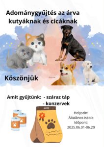 Állatvédelmi témahét | szeptember 30.-október 4. | Figyelemfelhívás, aktív programok szervezése | 1.-4. évfolyam | osztályfőnökök |