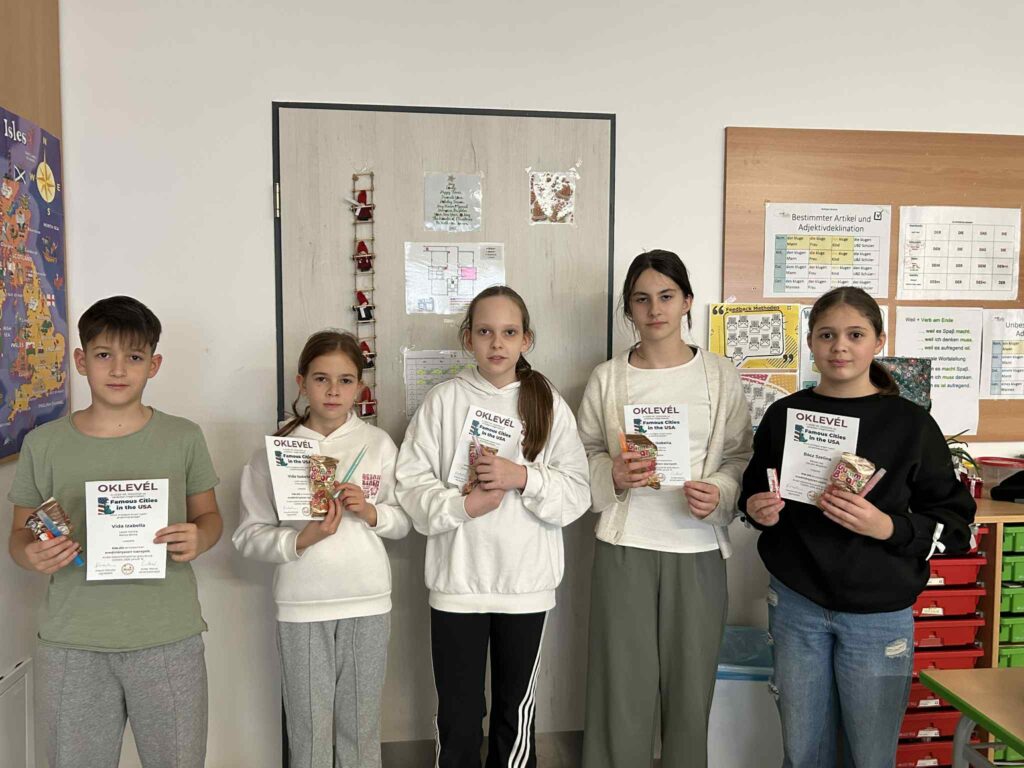 Iskolánk több csapata is részt vett a HEBE Famous Cities in the USA című országos levelezőversenyen. A megmérettetés során diákjaink kitartó munkával és alapos felkészültséggel képviselték intézményünket. A résztvevők az Amerikai Egyesült Államok híres városaihoz és kultúrájához kapcsolódó, változatos és kreatív feladatokat teljesítettek. A verseny feladatai között szerepeltek országismereti kérdések, rejtvények, valamint egy projektmunka is, amely az amerikai Függetlenség Napjához kapcsolódott: ennek keretében a csapatok közösen sütit készítettek.