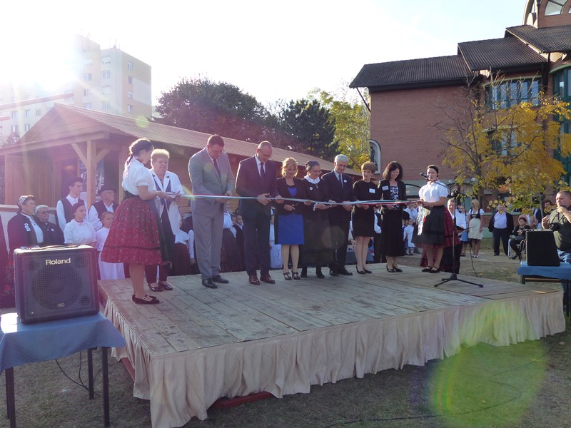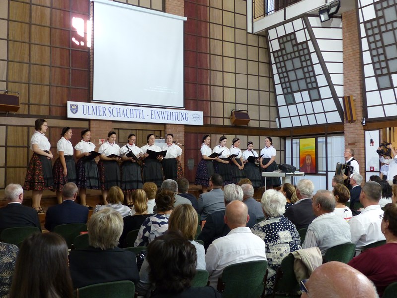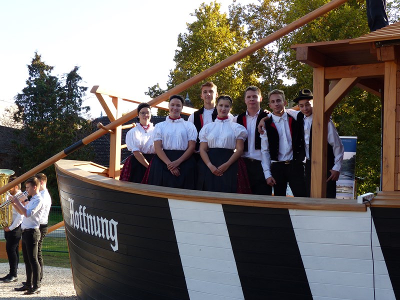 A megelevenedett múlt után került sor az Ulmer Schachtel hivatalos átadására, és a nemzeti színű szalag átvágására. A már átadott ulmi dereglyét Schindler Mátyás plébános szentelte fel és Kovács László evangélikus lelkész áldotta meg.